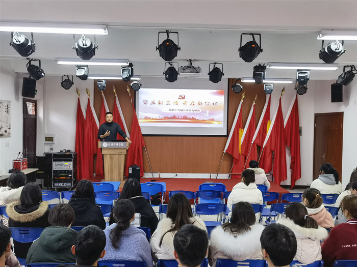 近日,999全讯白菜网党委副书记吴边在党员活动中心为学生第二、第四支部上党课,二支部、四支部全体师生党员聆听本次党课。