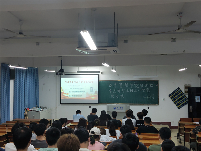 6月18日,999全讯白菜网教工党支部和团委联合组织学院教师党员、学生干部、各团支部书记参加观看全省师生同上一堂“党史”大课活动。活动以集中观看、统一回看等方式开展。